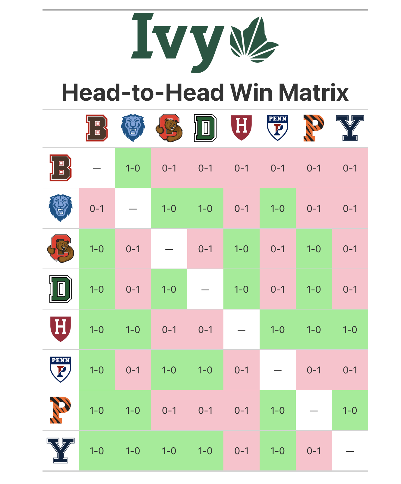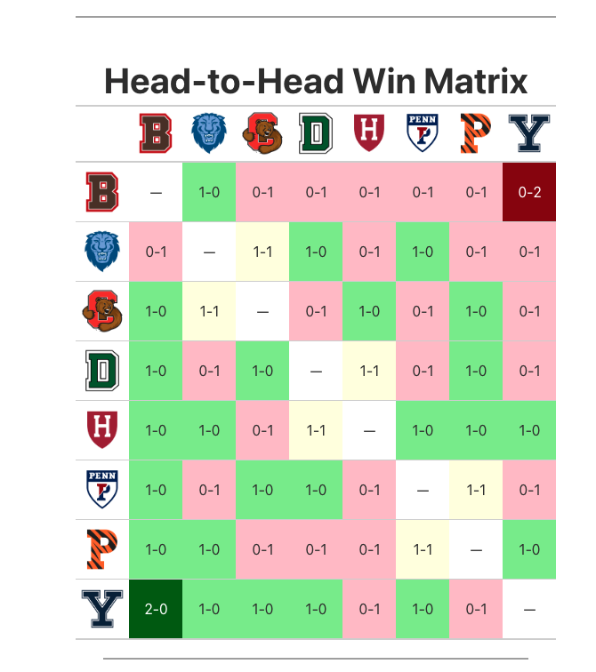 Cornell/Penn/Princeton/Dartmouth/Columbia H2H: