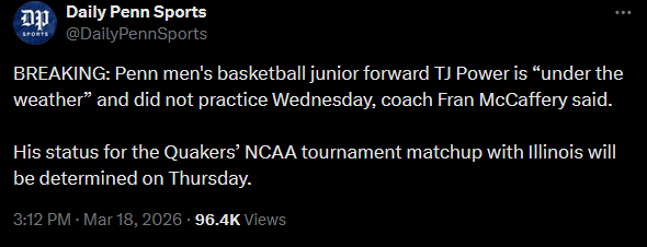 The good news is Fran will know Illinois well having coached against them every year before this year. Should be an advantage for Penn similar to scouting an Ivy League opponent where familiarity is high.