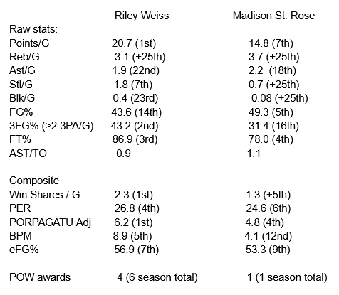 Every objective metric puts Weiss Ivy season significantly above St. Rose. Even White had a significantly better Ivy season than Madison. And I think everyone can see that. There shouldn’t be even a debate about POY after a bit of hesitation.